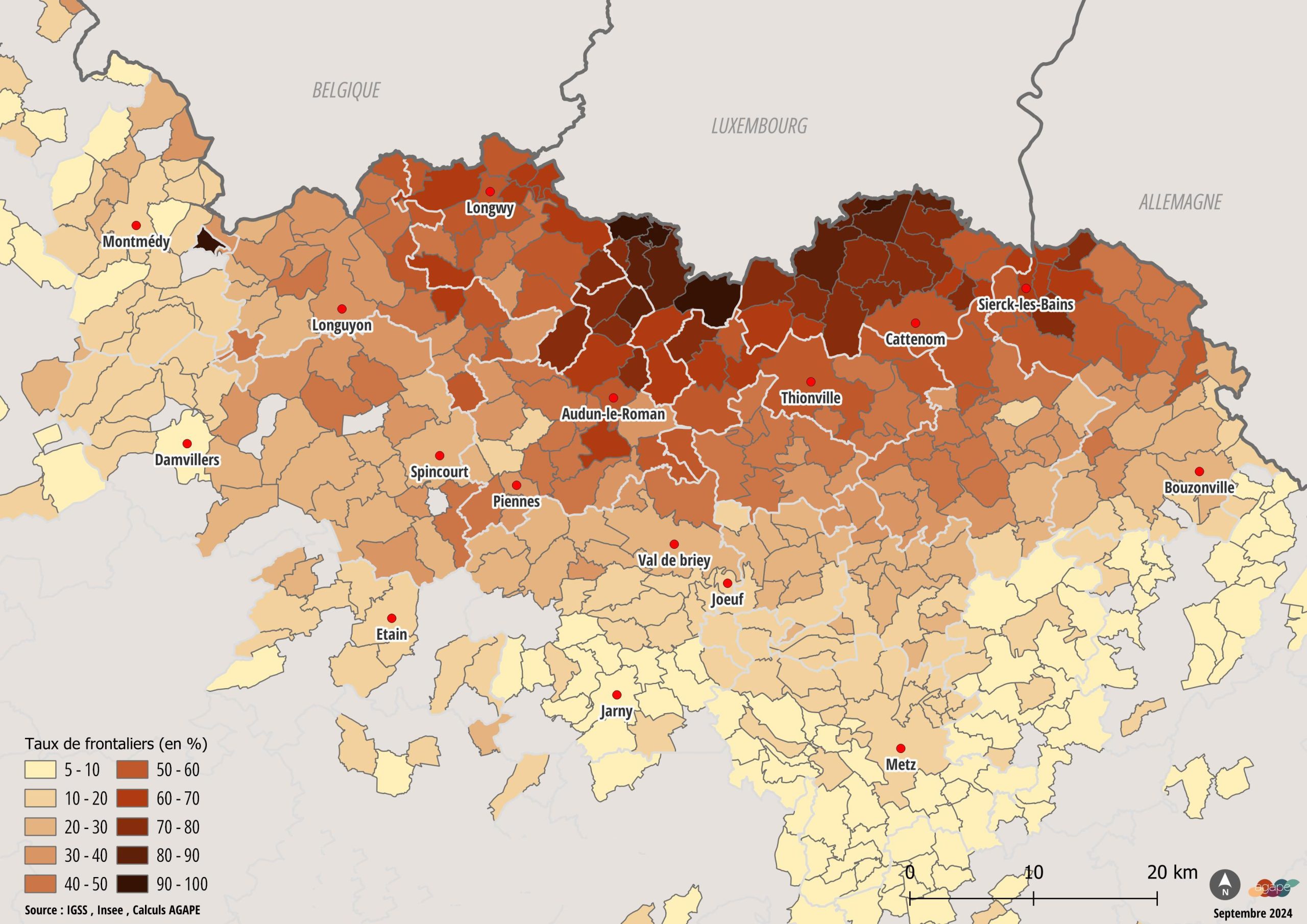 Estimation du taux de frontaliers dans le Nord-lorrain en 2024