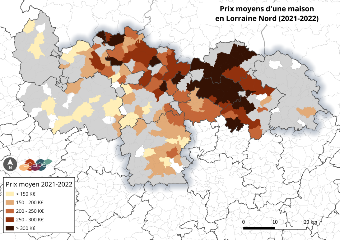 Prix moyen d’une maison en Lorraine Nord (2021-2022)