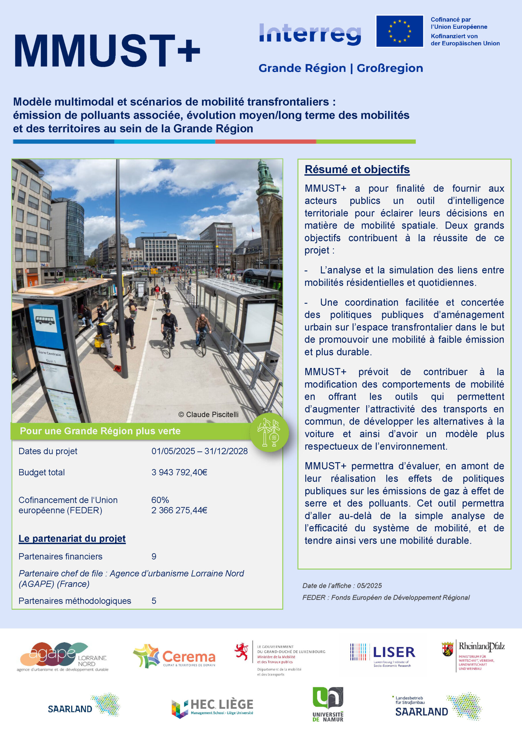 Le projet INTERREG MMUST+ est cofinancé par l’Union européenne (FEDER) et arrivera à échéance en 2028.